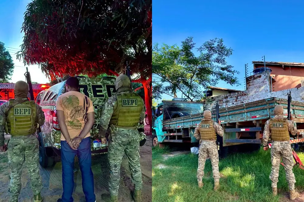 Suspeito tentou fugir, mas foi interceptado; ação recuperou veículo furtado no PiauíA Polícia Militar do Piauí, através do Batalhão Especial de Policiamento do Interior (BEPI), nesta terça-feira (08/04) um homem de 46 anos por receptação de veículo roubado, no bairro São Francisco 1, em Timon (MA). A ação resultou na recuperação de um caminhão Mercedes-Benz verde, que havia sido furtado em fevereiro deste ano na cidade de Matias Olímpio (PI), junto com um compressor de ar para escavação de poço tubular.