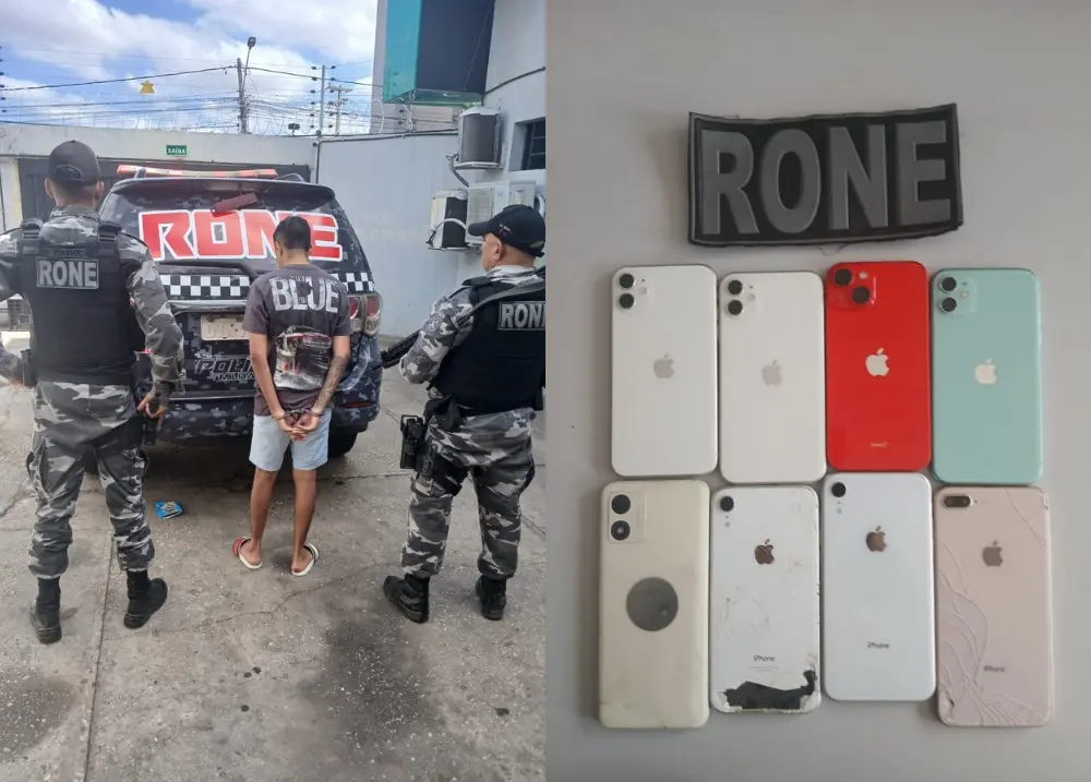 Durante a diligência, os policiais encontraram nove celulares no imóvel, sendo sete da marca Apple (modelos iPhone) e dois de marcas não identificadas. Dois dos aparelhos foram reconhecidos pela vítima como sendo de sua propriedade.