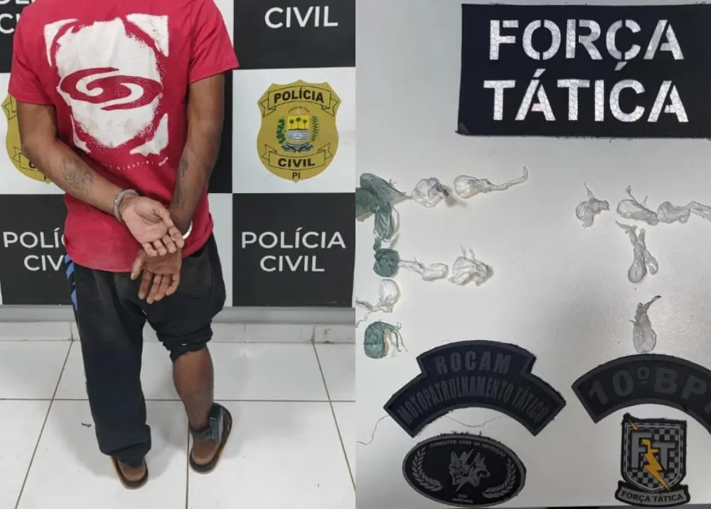 Durante a abordagem, o indivíduo tentou empreender fuga e se livrar de dois pacotesUm homem identificado apenas pelas iniciais R.J.O foi preso na noite deste domingo (10/08), por volta das 22h25, suspeito de tráfico de drogas no município de Uruçuí, região Sul do Piauí. A ação foi conduzida por policiais militares do 10º Batalhão, durante patrulhamento ostensivo na Avenida Ayrton Senna, no bairro Aeroporto.