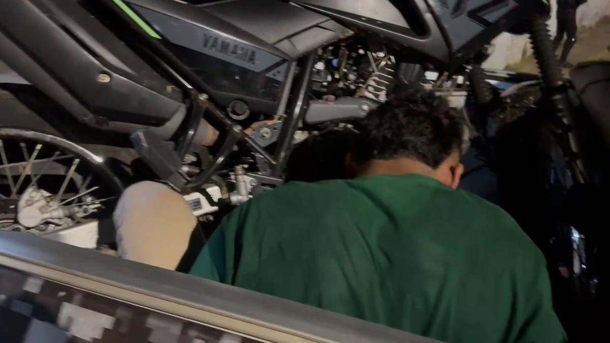 Após a abordagem, os policiais questionaram se o suspeito estava com armas ou drogas. Ele negou e afirmou desconhecer a situação da motocicleta. Durante a busca pessoal, nada ilícito foi encontrado, mas na verificação do veículo, foi constatado que a moto tinha registro de furto e roubo.