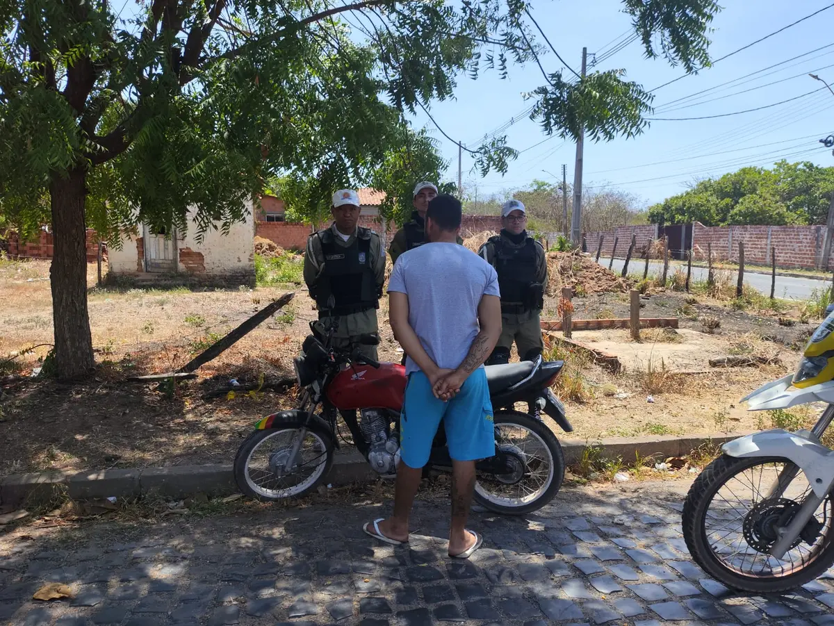 Durante a abordagem, após revista pessoal e inspeção no veículo, os agentes constataram que a motocicleta – uma Honda CG 125 Titan KS de placa LVQ 4542 – apresentava irregularidades. O número do motor registrado não correspondia ao que constava no veículo e havia indícios de adulteração, com o último dígito suprimido, o que impossibilitou a consulta completa dos dados.