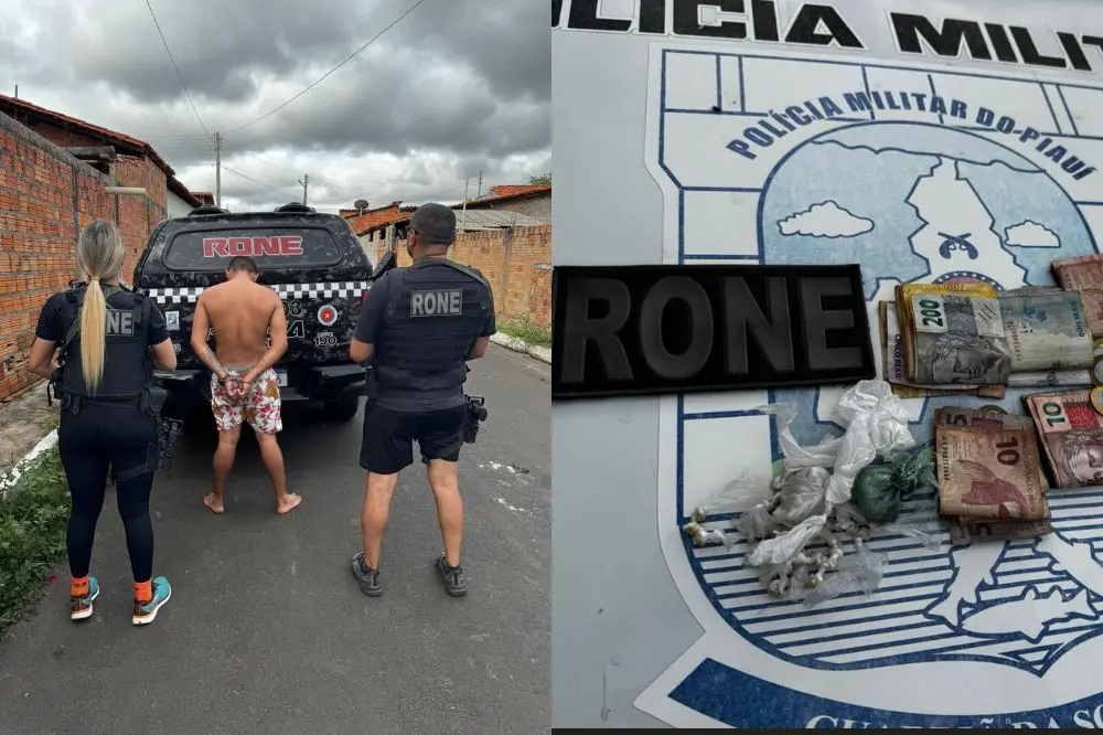 Substâncias foram encontradas na residência do suspeito, que foi preso em flagranteA Polícia Militar do Piauí, por meio de uma equipe do RONE, realizou na tarde desta terça-feira (14/01), uma apreensão de drogas e dinheiro em Campo Largo do Piauí. A ocorrência aconteceu por volta das 16h, na Rua Euvidio Nunes, após um pedido de apoio do Grupamento de Polícia Militar (GPM) local.