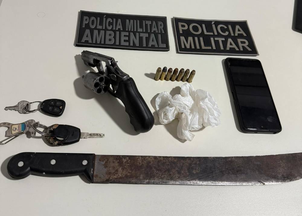 Durante uma varredura mais detalhada no ambiente, os policiais localizaram um revólver calibre .38 SPL, próximo ao local onde o abordado se encontrava. Ao ser questionado, ele confessou ser o proprietário da arma.