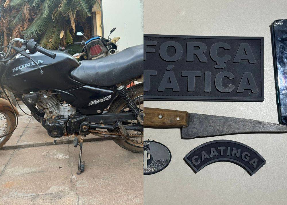 Além da ameaça, os policiais descobriram que a motocicleta utilizada na fuga, uma Honda Fan 125, apresentava sinais de adulteração, com chassi e motor raspados, configurando crime de receptação.
