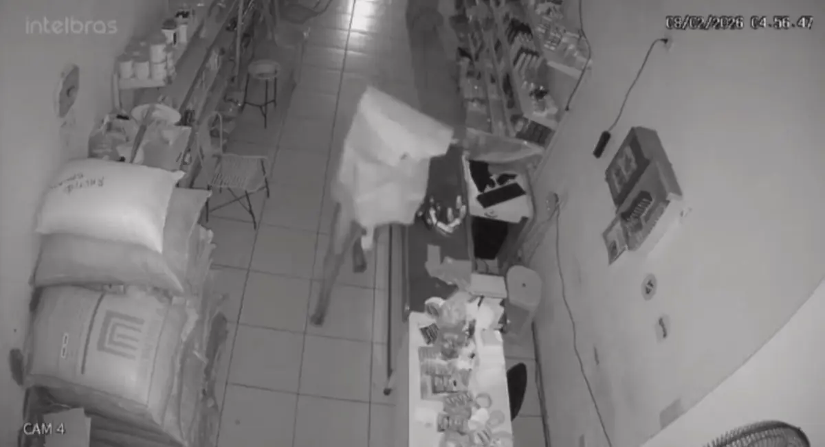 O vídeo mostra o homem acessando o local durante a madrugada e indo diretamente ao caixa, onde revira o espaço à procura de dinheiro ou objetos de valor. Em seguida, ele recolhe alguns produtos, coloca-os em uma sacola e deixa o estabelecimento.
