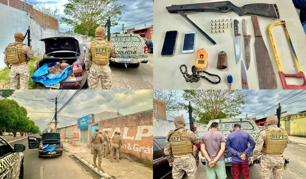 Homens são presos com arma e animais abatidos dentro de carro em Teresina