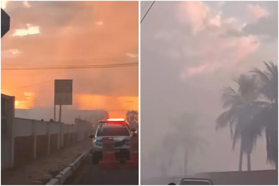 A defesa civil foi acionada para controlar o incêndio. Felizmente, apenas o capim foi queimado, não houve danos materiais.