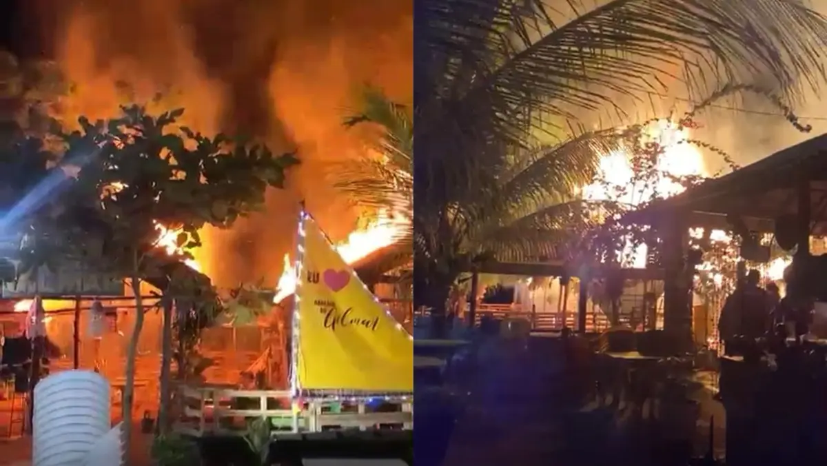 Em imagens divulgadas nas redes sociais, é possível observar o fogo consumindo a barraca.