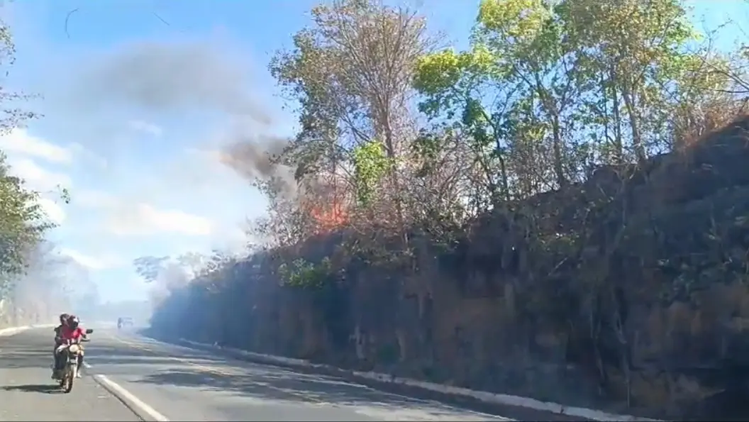 Incêndio provocado por faíscas em Angical dura quase 24 horas; assista ao vídeo