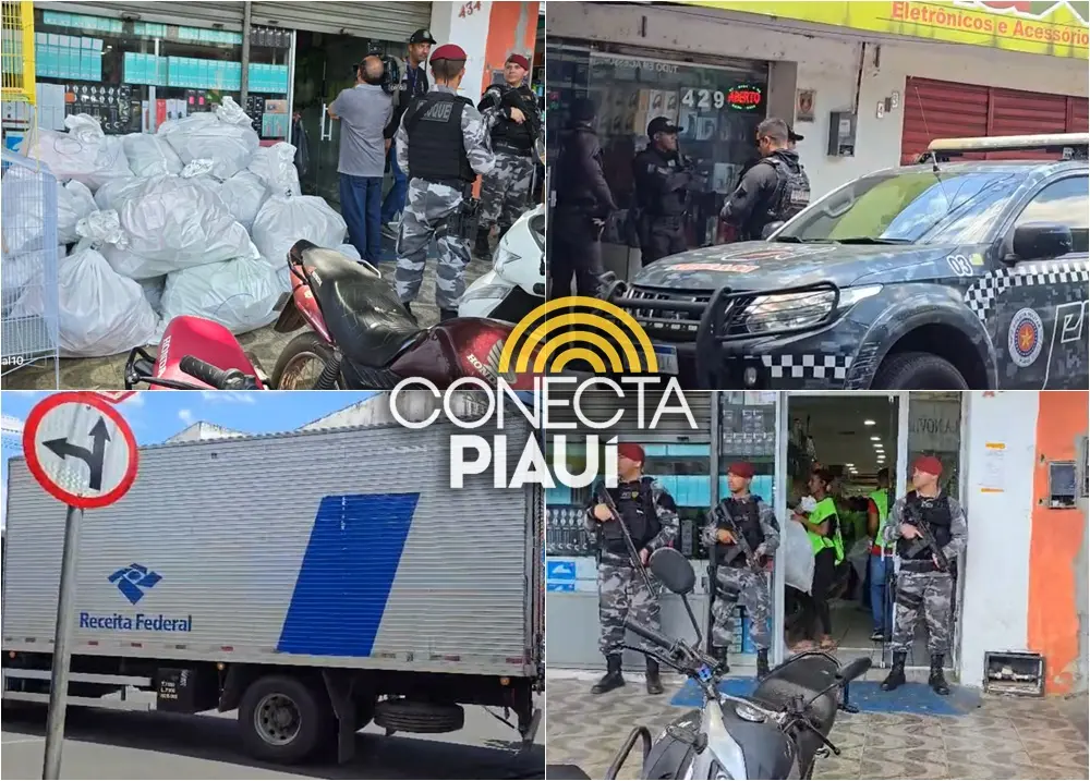 Viaturas e até um helicóptero atuam para combater crimes fiscais na capitalA Receita Federal realizou nesta quinta-feira (23/10) uma grande operação de fiscalização em Teresina, com foco na repressão à entrada e à comercialização de produtos irregulares no comércio local, com foco ela lojas de produtos importados e que revendem material falsificado.