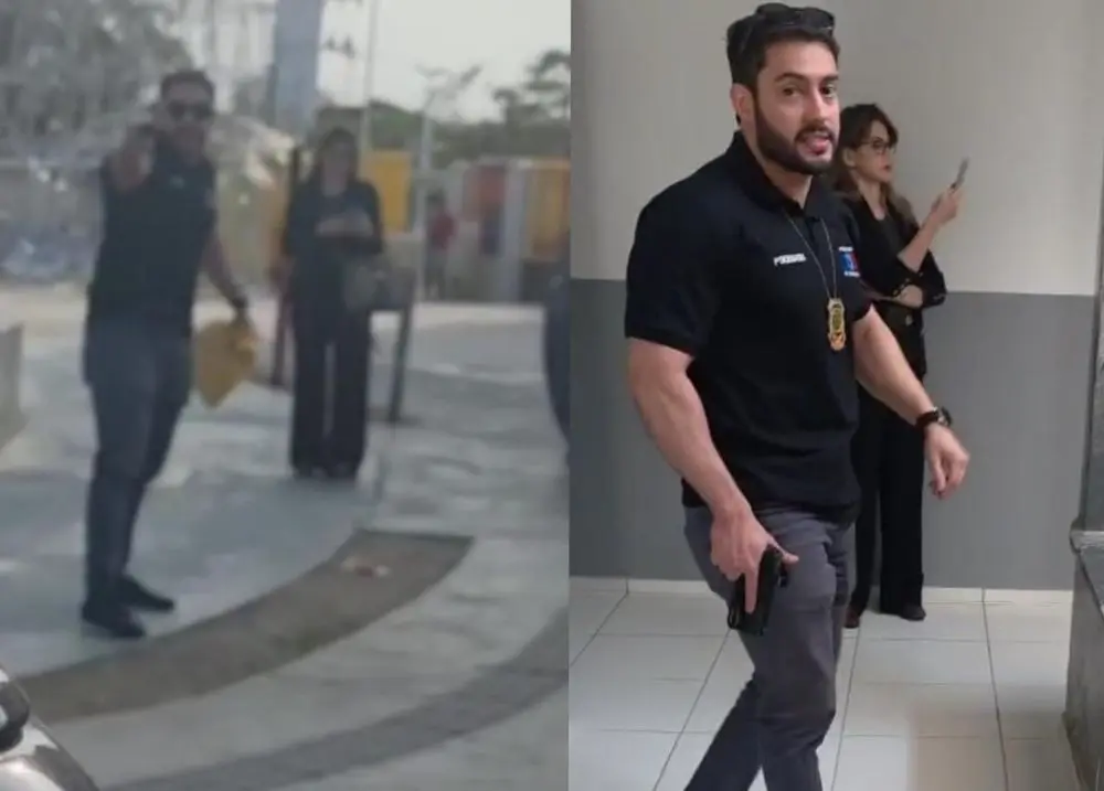 As imagens gravadas no momento da confusão mostram o médico segurando a arma em uma mão e o envelope com o documento na outra, enquanto testemunhas tentam compreender o que acontecia. A abordagem repentina gerou pânico entre pessoas que estavam na praça e nas proximidades da escola.