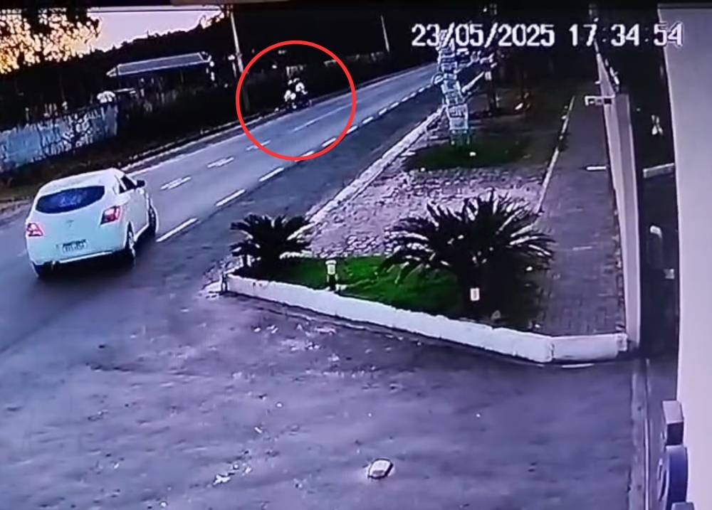 Nas imagens é possível ver o motociclista abordando uma mulher – que também estava em uma motocicleta – momento em que solicita a joia e passam alguns minutos no local, aparentemente tentando retirar a aliança do dedo da vítima. Logo em seguida, ao conseguir o pertence, o ladrão empreende fuga em sentido ignorado, enquanto a mulher sai para próximo de um portal que parece ser de um condomínio.