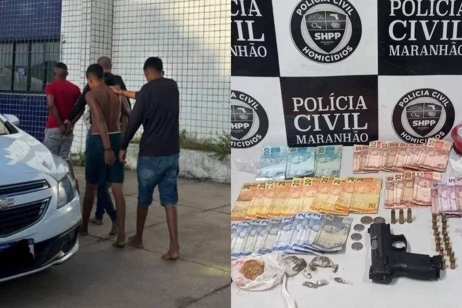 A mãe foi conduzida e autuada por tráfico de drogas e corrupção de menor.A Polícia Civil do Maranhão cumpriu nesta segunda-feira (27/05) mandados de buscas e apreensões no bairro Cidade Nova I, em Timon, no Maranhão. Em uma das residências, os agentes encontraram uma criança, de apenas 8 anos, com drogas e uma pistola na cintura. A mãe foi conduzida e autuada por tráfico de drogas e corrupção de menor.