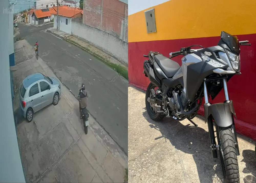Imagens de uma câmera de monitoramento registrou o momento em que os suspeitos levam o veículoUm homem teve sua motocicleta furtada por dois criminosos na manhã desta sexta-feira (24/10), no bairro Lourival Parente, zona Sul de Teresina. O veículo estava estacionado em frente à empresa onde a vítima trabalha, quando os suspeitos se aproximaram e realizaram o crime.