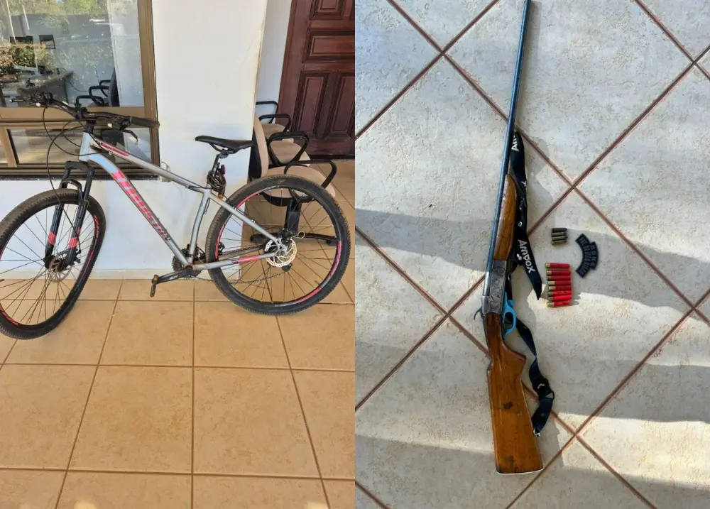 De acordo com testemunhas, outro ocupante do carro, identificado como G.B. de S., deixou o local levando uma espingarda. Após diligências, os policiais conseguiram localizá-lo e apreenderam uma espingarda calibre 36, além de oito munições calibre 36 e quatro munições calibre 38.