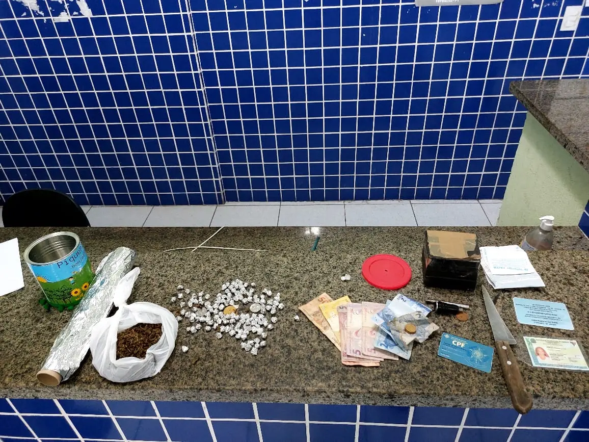 Após a obtenção dessas informações, os policiais se dirigiram ao local mencionado e foram recebidos por uma mulher, que permitiu a entrada e a realização de busca na residência. Durante a busca, foram encontrados cerca de 20g de maconha fragmentada e 129 pedras de crack, as quais estavam escondidas em uma lata de leite.