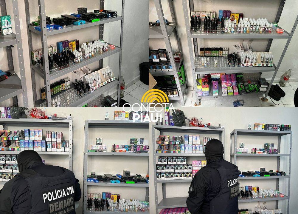 Durante o cumprimento de 25 mandados de busca e apreensão, foram realizadas 8 conduções, com destaque para a maior apreensão de cigarros eletrônicos (vapes) já registrada no Piauí. Os produtos estavam armazenados em um depósito clandestino na zona Centro-Sul de Teresina e eram distribuídos por toda a capital.