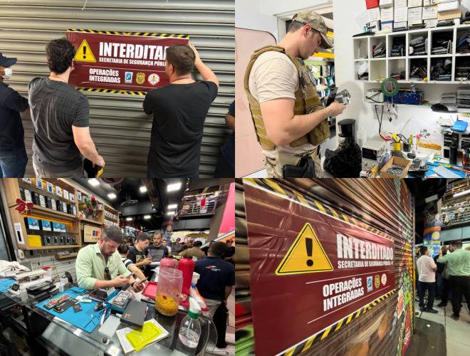 A Operação Interditados teve início durante o mês de março deste ano e já resultou na prisão de 20 pessoas, apreensão de 550 celulares e 54 lojas interditadas.