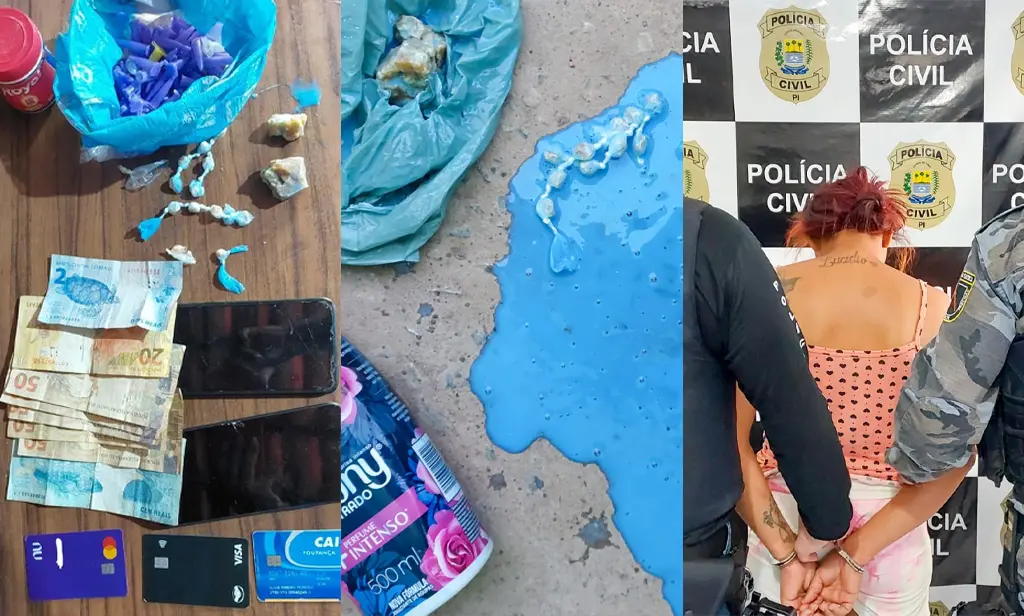 Durante a operação, uma mulher foi detida em flagrante por tráfico de entorpecentes. Durante a busca, uma quantidade de crack foi encontrada dentro de uma embalagem de amaciante. A polícia também apreendeu dinheiro, cartões e celulares.