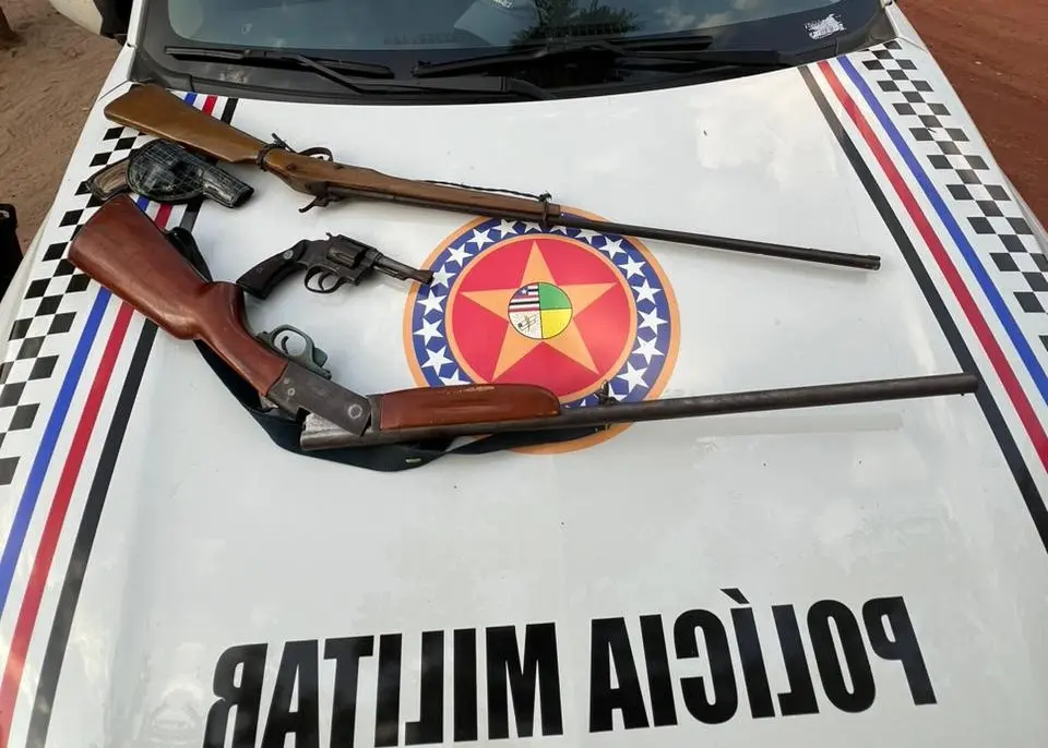 A guarnição se deslocou até o local, onde a vítima entregou as armas e munições, resultando na prisão do acusado. Foram apreendidos um revólver calibre .38 com 11 munições intactas, uma espingarda bate-bucha e uma espingarda cartucheira.