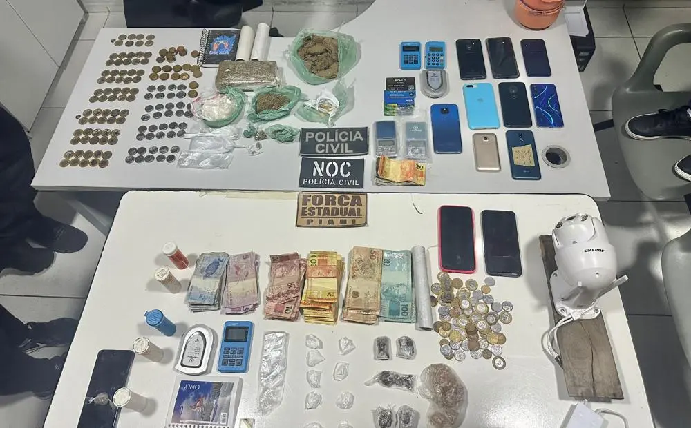 Os presos serão encaminhados para audiência de custódiaA Polícia Civil do Piauí, por meio das delegacias de Água Branca e Amarante, em conjunto com as forças especiais de segurança pública do Estado, deu cumprimento a 07 mandados de busca e apreensão nas cidades de Água Branca, Olho D'água, Angical e Amarante. A operação aconteceu na tarde dessa sexta-feira (14). Na ocasião, três pessoas foram presas em flagrante, quatro veículos apreendidos, além da apreensão de uma grande quantidade de drogas, dinheiro, celulares e outros materiais utiizados pelos criminosos. As informações são do Canal 121.