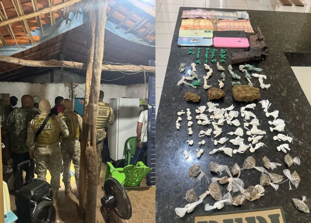 A ação aconteceu após denúncias sobre o paradeiro de crimes contra colecionadores (CACs)Uma ação integrada entre a Polícia Militar do Piauí e o Grupo de Operações Especiais (GOE) da PM do Maranhão resultou na prisão de três pessoas por tráfico de drogas e porte ilegal de arma de fogo, na tarde desta quarta-feira (13/08), na localidade Nazaré do Bruno, em Caxias.