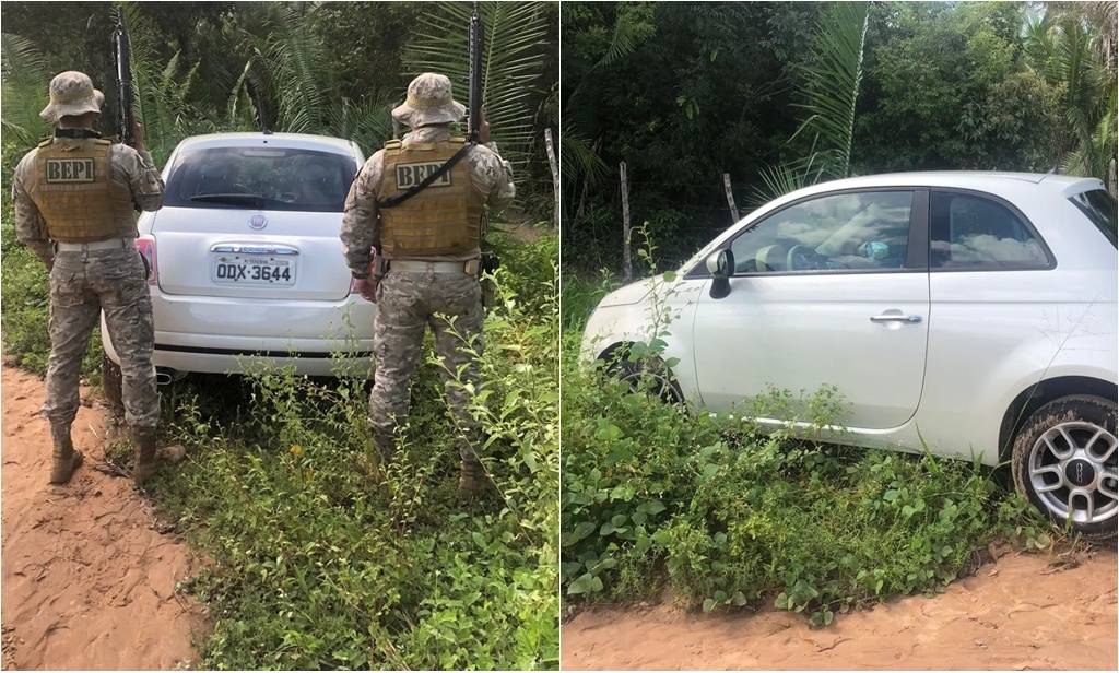 Conforme informações, os policiais estavam fazendo patrulhamento na PI 130, quando se depararam com o carro de modelo Fiat cult dual, cor branco, placa ODX 3644, estacionado as margens da PI.