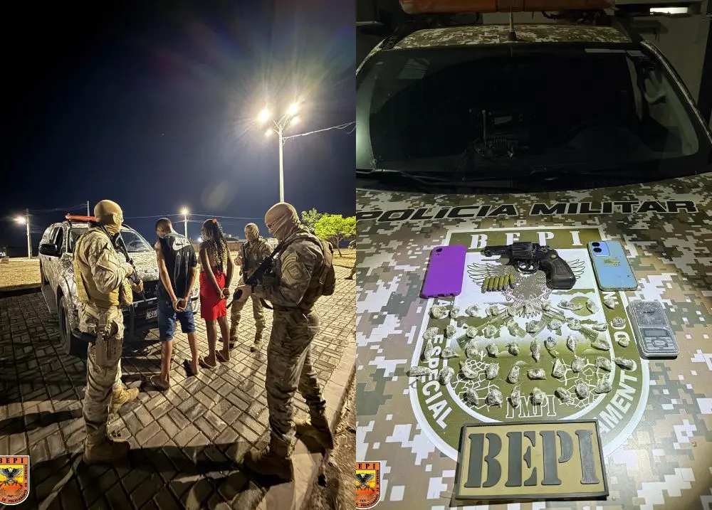 PM frustra 'tribunal do crime' e prende casal com arma e drogas em Teresina