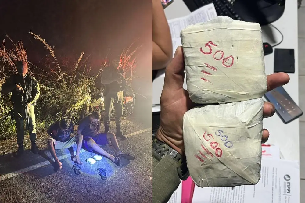 Os homens foram identificados pelas iniciais F. M. da S. e W. de A. M. Com eles também foram apreendidos um celular Xiaomi azul, R$ 736,50 em dinheiro e a motocicleta utilizada no deslocamento. A dupla foi conduzida à Delegacia de Polícia Civil de Luzilândia, onde permanece à disposição da Justiça.