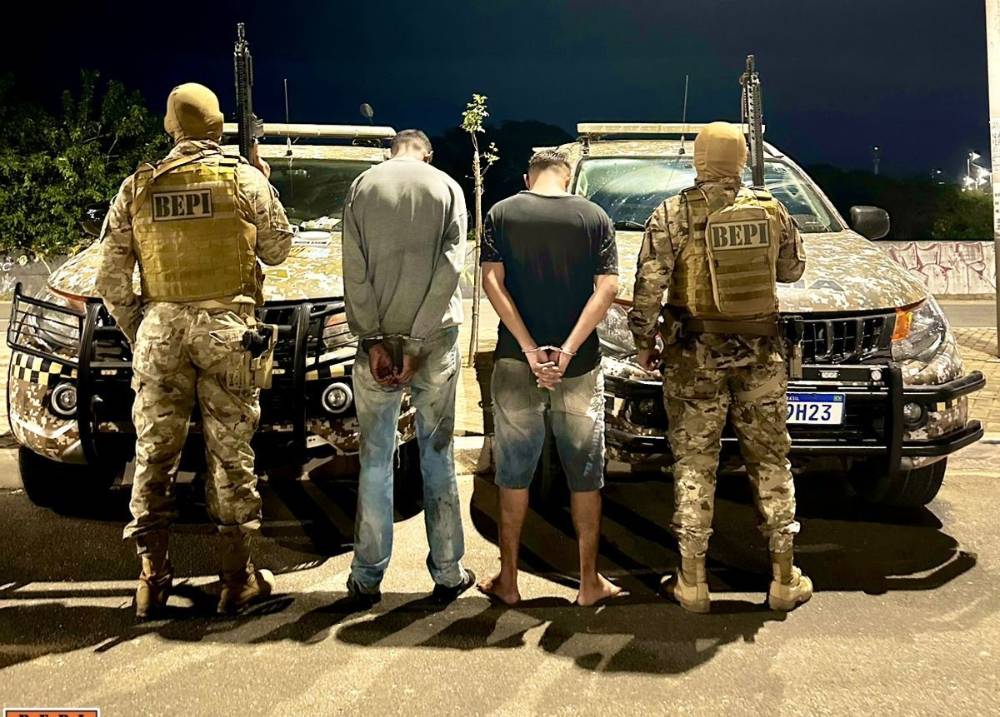Durante patrulhamento ostensivo determinado pelo comandante do BEPI, tenente-coronel Alves, as equipes avistaram dois indivíduos em atitude suspeita saindo de uma residência com uma mochila preta. Ao perceberem a aproximação da viatura, os suspeitos retornaram rapidamente para o imóvel e tentaram fugir, pulando muros de residências vizinhas e adentrando uma área de mata de difícil acesso. Foi solicitado apoio de outra guarnição e, após buscas, os suspeitos foram localizados e detidos.
