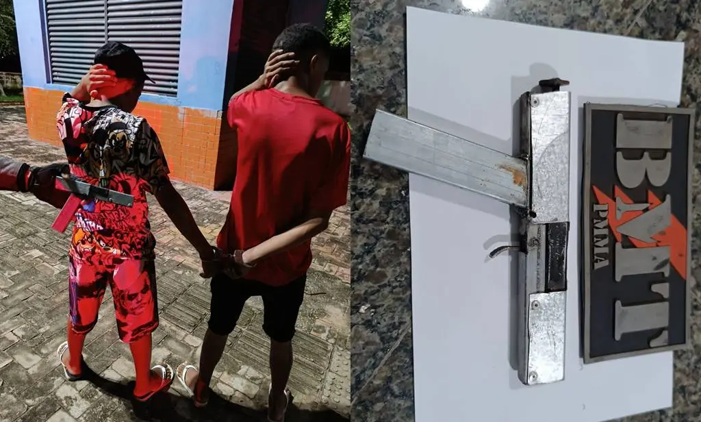 Nesta sexta-feira (05), por volta das 22 horas, a polícia prendeu dois indivíduos identificados apenas pelas iniciais C.L.A.M, e V.G.O.L na rua P, Cidade Nova 2, na praça ao lado da UBS da Cidade Nova 2, Timon. Eles também foram presos por porte ilegal de arma de fogo.