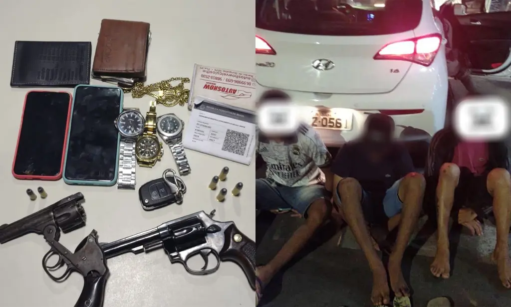 Policia prende trio e apreende armas de fogo e carro roubado em Teresina