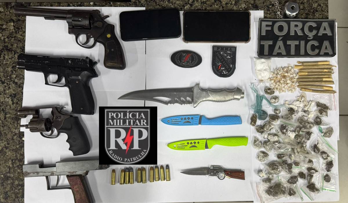 As equipes da Rádio Patrulha de ambos os batalhões, com apoio da Força Tática e do Grupo de Operações Especiais, atuaram sob o comando do Coordenador de Policiamento do Dia. No local, foram encontrados revólveres calibre .38 com numerações identificadas, uma arma de fogo de fabricação caseira, um simulacro de pistola, munições intactas, facas, um canivete, além de dezenas de invólucros de substâncias análogas ao crack, cocaína e maconha.