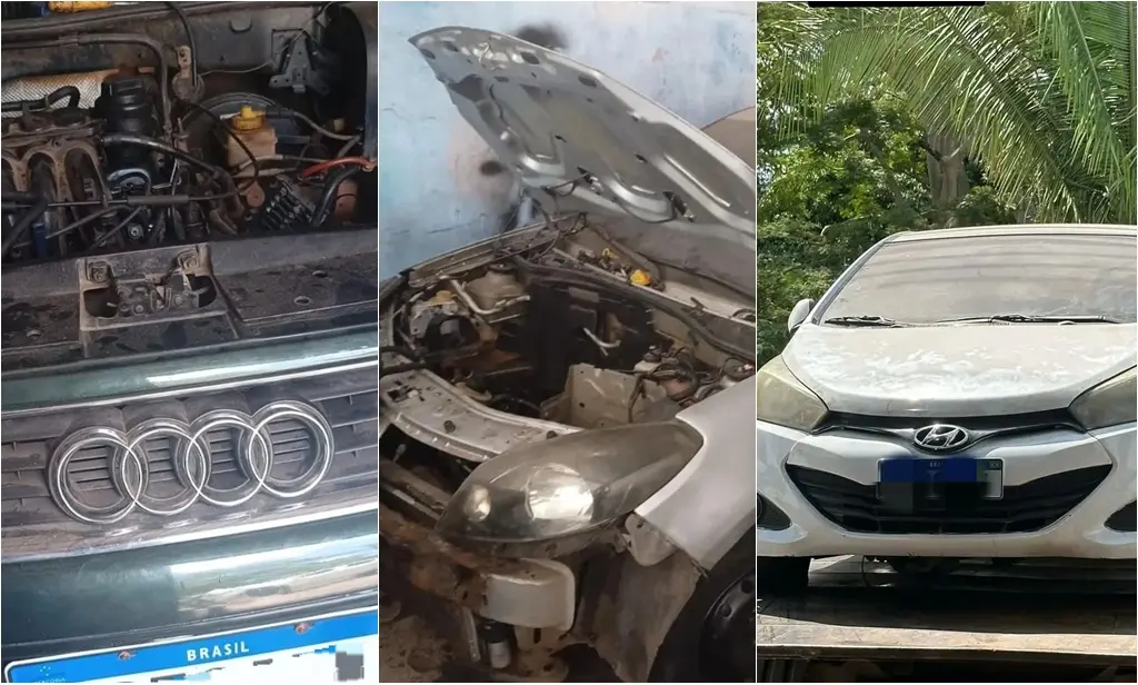 Foram apreendidos dois HB20 e um Audi, além de dois motores de Sandero e Nissan March. Todo o material foi encaminhado ao DRFV, onde passarão por perícia.