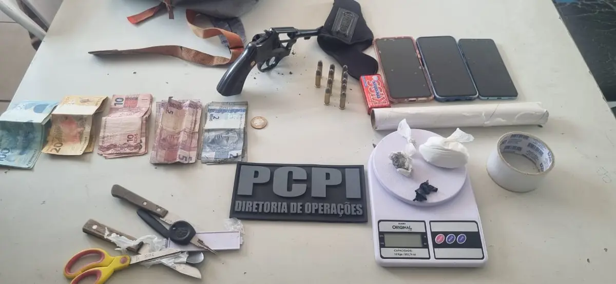 ”O homem foi surpreendido no quintal de sua casa tentando fugir em posse de uma mochila de onde foram apreendidos um revólver calibre 38, drogas, dinheiro, balança de precisão e apetrechos para venda de drogas. O alvo da diligência é investigado por crimes de roubo de veículos e agora vai ser autuado também em flagrante pelos crimes de tráfico de drogas e de posse irregular de arma de fogo. A Polícia Civil do Piauí, por meio desta ação, retira das ruas um indivíduo perigoso”, completou o delegado.
