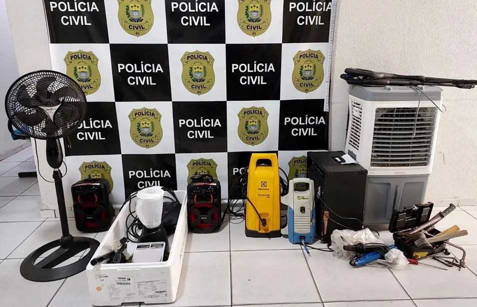 Nas residências localizadas no bairro Rodagem de Picos, foram apreendidos vários objetos com registro de furto, como caixas de som, sanduicheira, pratos, liquidificador, pranchas de cabelos, lavadoras de alta pressão e outros. Em uma das residências encontrava-se um homem com as iniciais E.L.F que foi preso, autuado em flagrante, pelo crime de receptação.