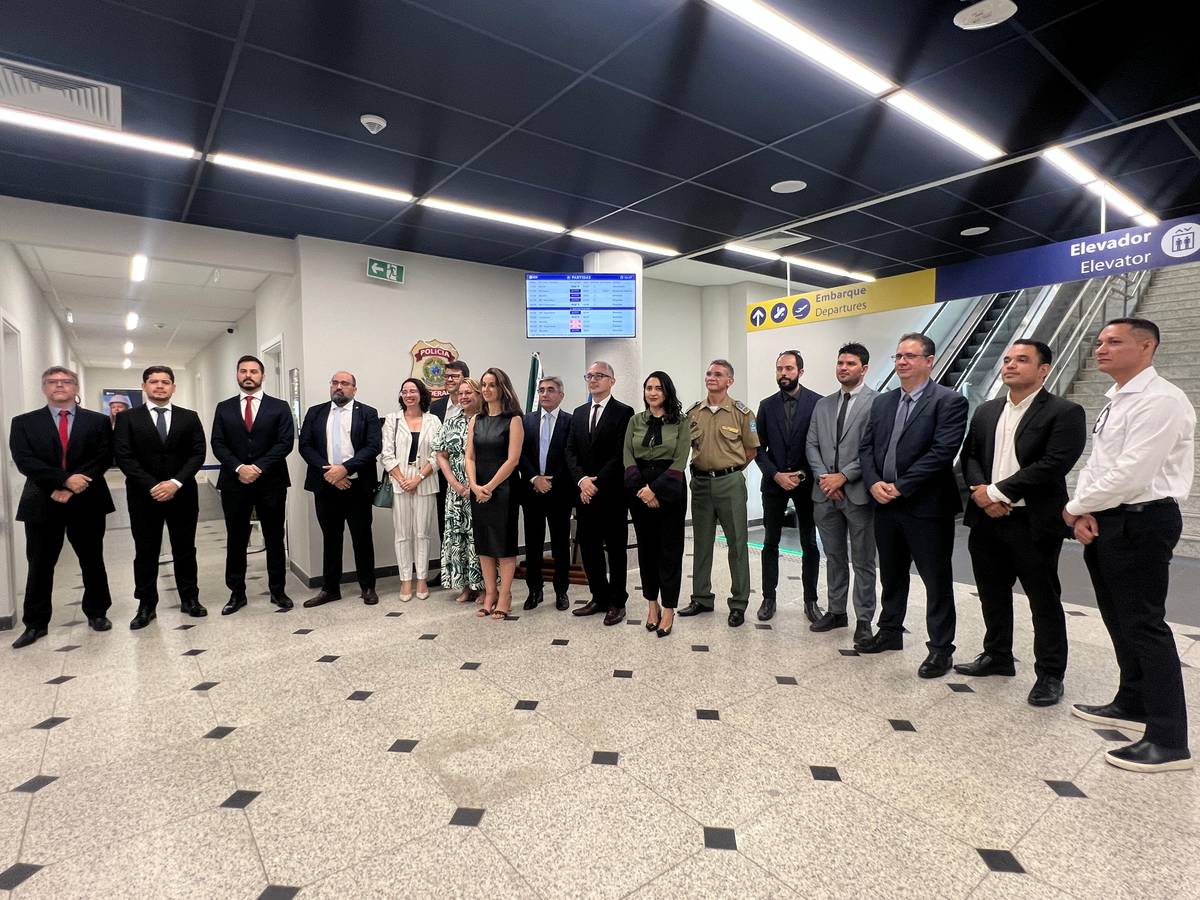 "Com a reforma do aeroporto e maiores voos, foi salutar a presença da Polícia Federal 24 horas neste aeroporto. Constituímos também, baseado no modelo que foi instalado na Paraíba em 2022, o grupo de segurança aeroportuário, é um grupo especializado em abordagens, buscando verificar vulnerabilidades, a questão também de segurança orgânica dentro do aeroporto e cometimentos de crimes dentro do centro.", destacou Melissa Maximino,Superintendente Regional da Polícia Federal.