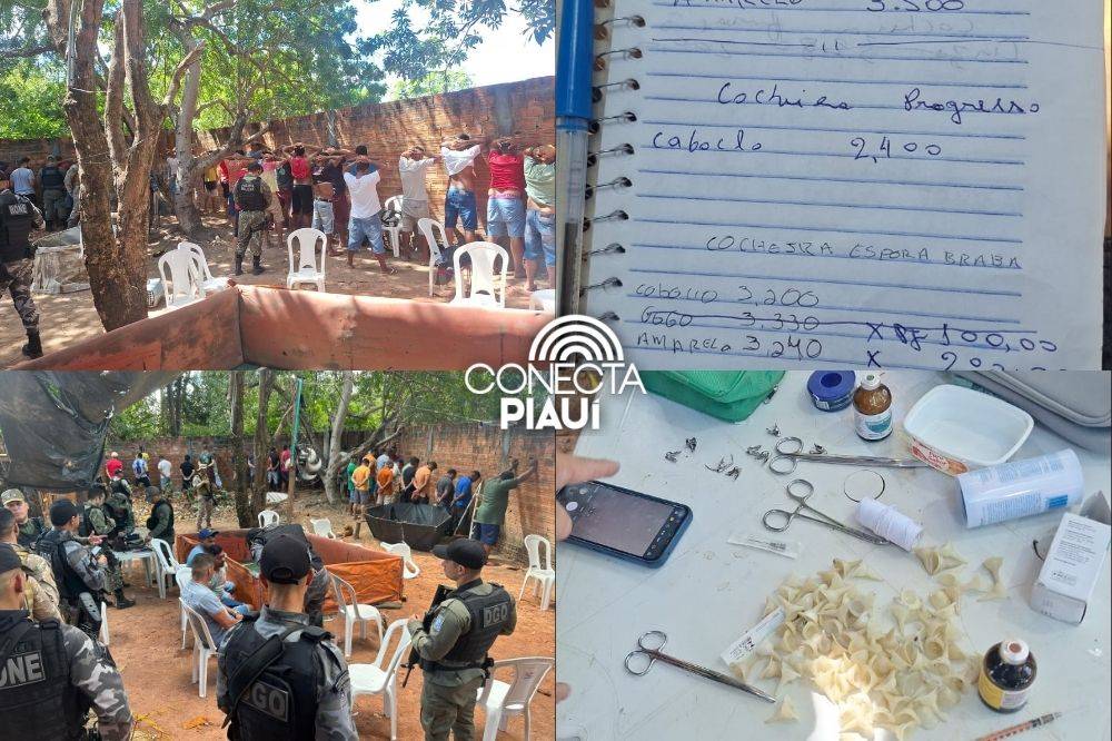 Ação flagrou maus-tratos a cerca de 40 galos e apreendeu drogas, apostas e celulares roubadosA Polícia Militar do Piauí desarticulou, na tarde deste domingo (8), uma rinha de galos que funcionava em uma residência na região do Porto Centro, zona Leste de Teresina. A operação faz parte das ações do Pacto Pela Ordem e resultou na condução de 43 pessoas à Central de Flagrantes.