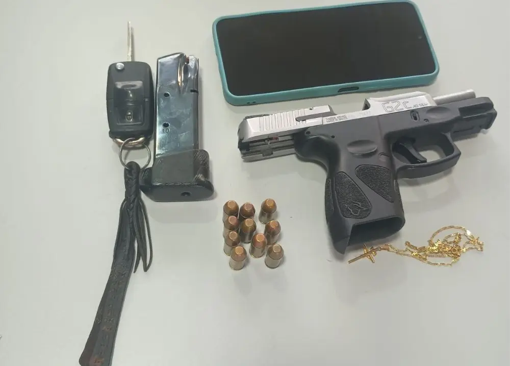 Com ele, foi apreendida uma pistola Taurus G2C calibre .40, além de um carregador e 10 munições. A vítima recebeu atendimento após o ataque e segue em acompanhamento.