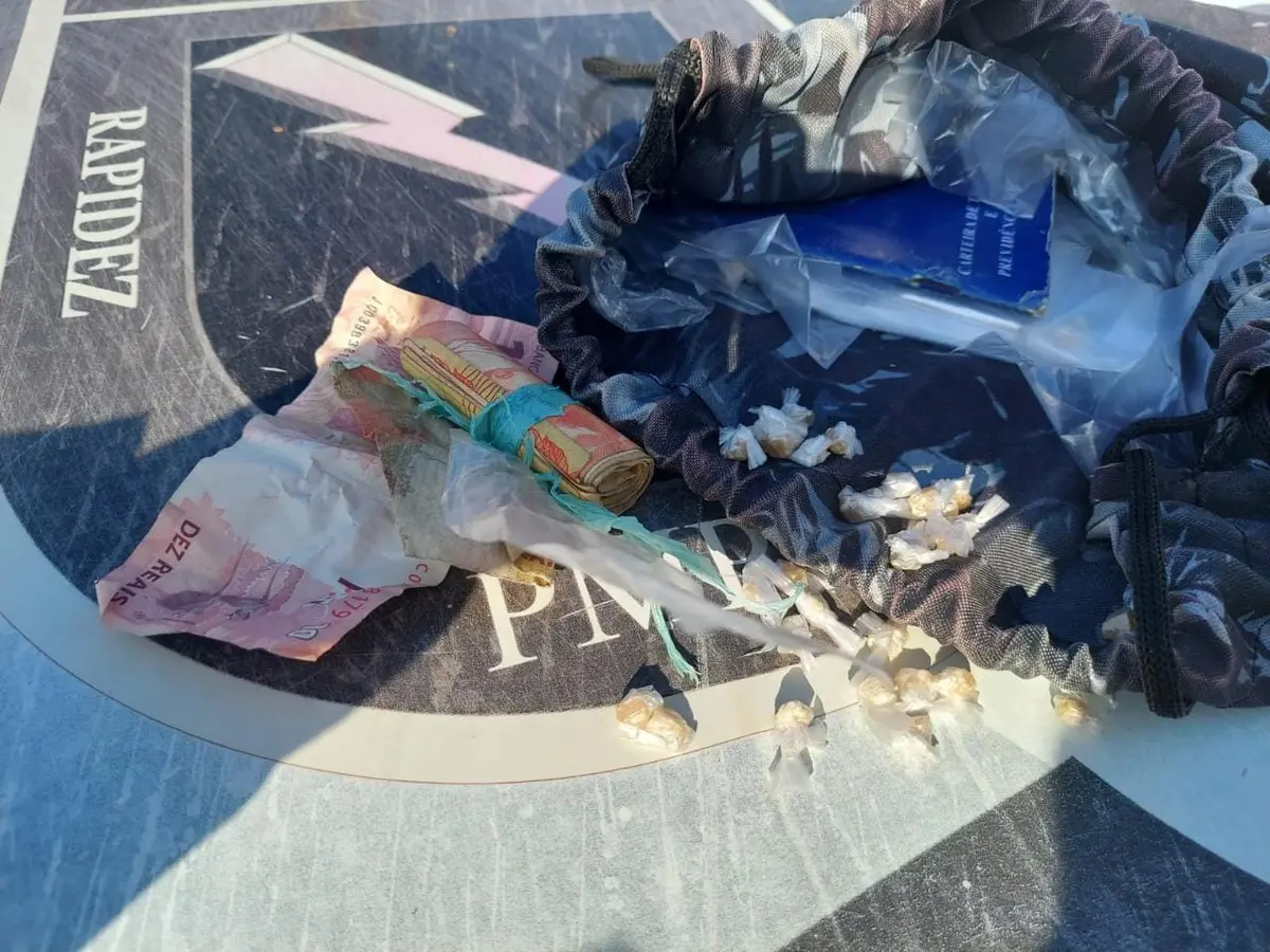 Os policiais se deslocaram até a casa do acusado e constataram o fato. Os menores até tentaram se desfazer da droga, mas foram contidos. Com eles foram encontrados um celular, um relógio, dois cordões de prata, R$ 718 (setecentos e dezoito reais) em dinheiro, várias pedras de crack e trouxinhas de maconha.
