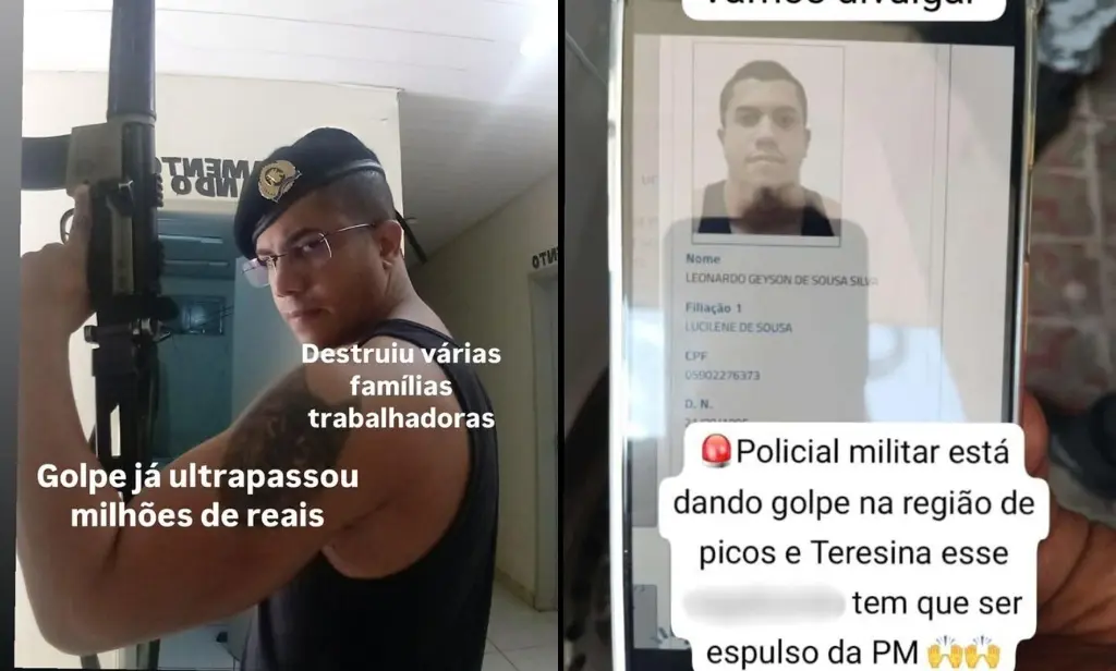 O PM causou prejuízo de aproximadamente R$ 240 mil ao induzir as vítimas a realizarem investimentosO cabo Leonardo Geyson de Sousa Silva, da Polícia Militar do Piauí, foi denunciado novamente pelo crime de estelionato, sendo acusado de aplicar golpes financeiros em colegas da corporação. Segundo o Ministério Público, o policial causou prejuízo de aproximadamente R$ 240 mil ao induzir as vítimas a realizarem investimentos fraudulentos.