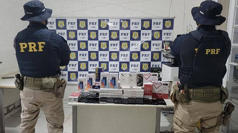 Prosseguindo com as fiscalizações no veículo, a equipe localizou mais dois aparelhos celulares, também transportados como encomenda. Indagado uma mais vez, o condutor reafirmou que também se tratava de uma encomenda despachada em São Paulo. Novamente, nenhuma nota fiscal foi apresentada.