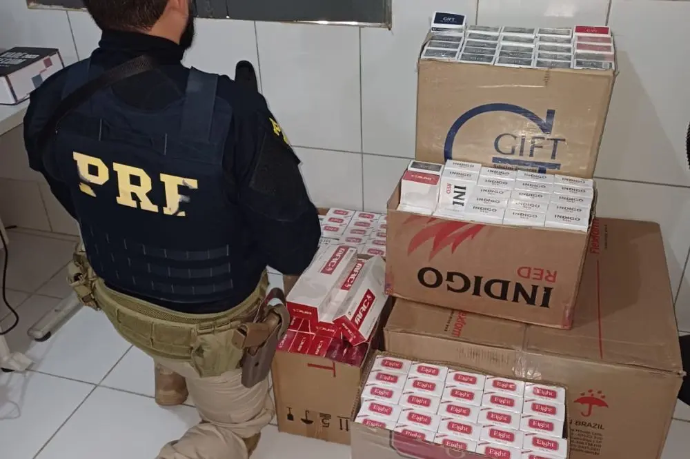 Durante a vistoria, os policiais encontraram cinco caixas de cigarros de origem estrangeira no compartimento de carga do automóvel. Questionado sobre a nota fiscal e a procedência da mercadoria, o motorista afirmou não possuir documentação e desconhecer a origem do produto.