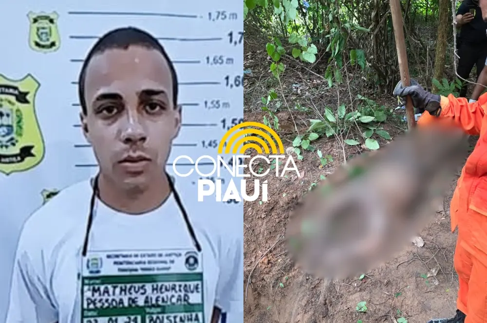 A vítima estava desaparecida desde o dia 5 de fevereiro e foi encontrado decapitado na área de mataO fugitivo que teve seu corpo encontrado enterrado em uma cova na manhã desta quarta-feira (11/02), na zona Sudeste de Teresina foi identificado como Matheus Henrique Pessoa de Alencar, de 23 anos, conhecido pelo apelido de “Bolsinha”. Ele estava desaparecido e era considerado foragido do sistema prisional.