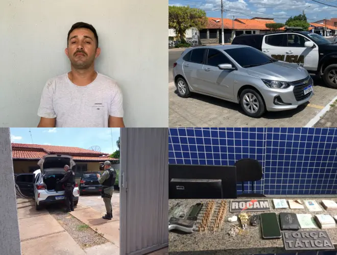 Os policiais fizeram um cerco policial e entraram na casa do suspeito. Ele é natural de Tianguá-CE e afirmou ter comprado o veículo. Com ele também foi encontrado uma grande quantidade em dinheiro e munições de calibre 380. Além disso foi encontrada também uma pistola nove milímetros com munições.
