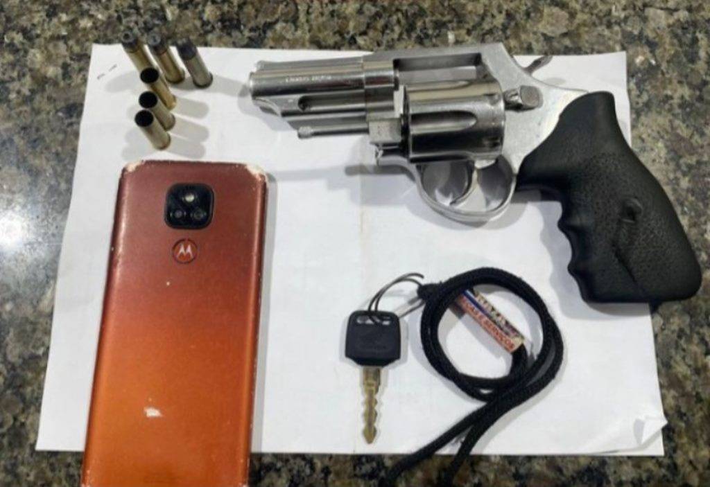 Os criminosos chegaram a fugir da cena do crime, mas foram encontrados pelos agentes policiais com uma arma de fogo com três munições deflagradas.