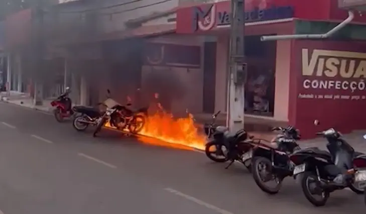 Fios caíram na calçada de uma loja e atingiu motos. O caso aconteceu na rua Coronel José Fortes e a Polícia Militar foi acionada. Moradores da região já haviam denunciado problemas no transformador.
