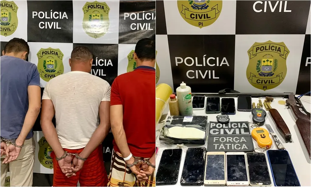 Foram encontrados celulares, balanças de precisão, arma de fogo, munições deflagradas e cocaínaTrês homens foram presos na manhã desta quinta-feira (21/12) em operação da Polícia Civil do Piauí (PC-PI) em combate ao tráfico de drogas no município de Oeiras. A ação foi realizada pela Delegacia Seccional de Oeiras e do Núcleo de Inteligência da Polícia Civil, com apoio da Força Tática do 14º Batalhão de Polícia Militar do Piauí.