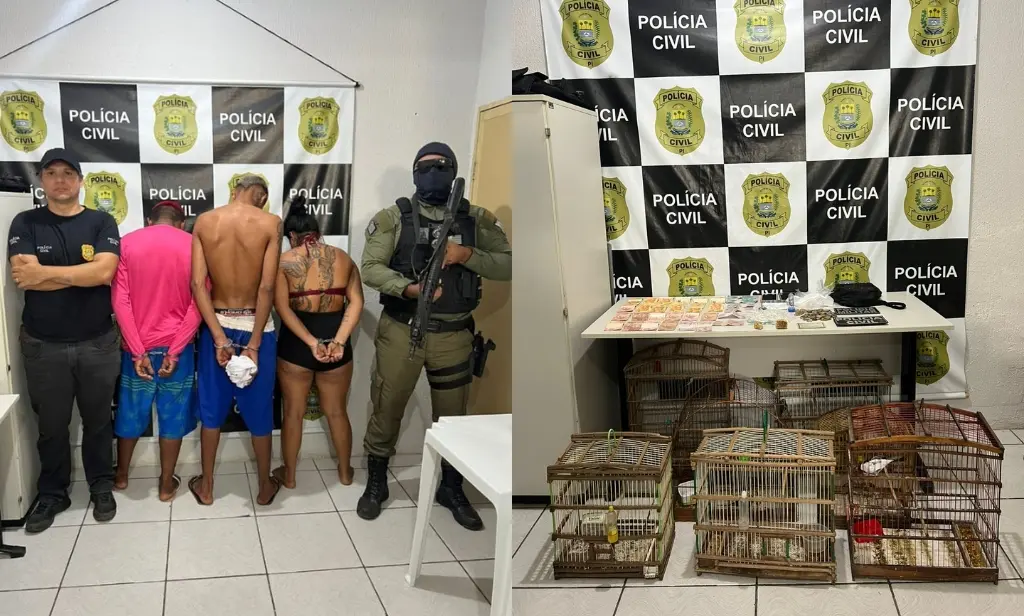 A operação foi resultado de investigações que monitoraram movimentações suspeitas no localA Polícia Civil de Buriti dos Lopes, com o apoio do Grupamento de Polícia Militar (GPM), prendeu em flagrante na última sexta-feira (10/01) três indivíduos identificados pelas iniciais T.S.S., A.S.C. e C.D.S.S. A operação ocorreu em uma residência no município, onde foram encontrados drogas, materiais relacionados ao tráfico e pássaros silvestres mantidos ilegalmente.