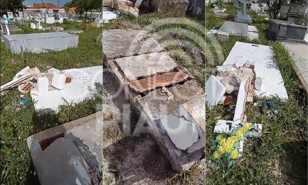 Esse caso em específico envolveu vilipêndio de cadáver. Conforme apurado, a tampa de mármore de um túmulo foi quebrada, e o corpo retirado do jazigo. O cadáver teria sido recolocado pelo próprio coveiro do cemitério. Imagens obtidas com exclusividade, mostra o local revirado com várias estruturas depredadas.